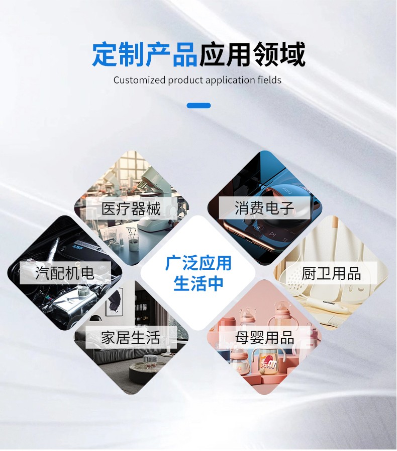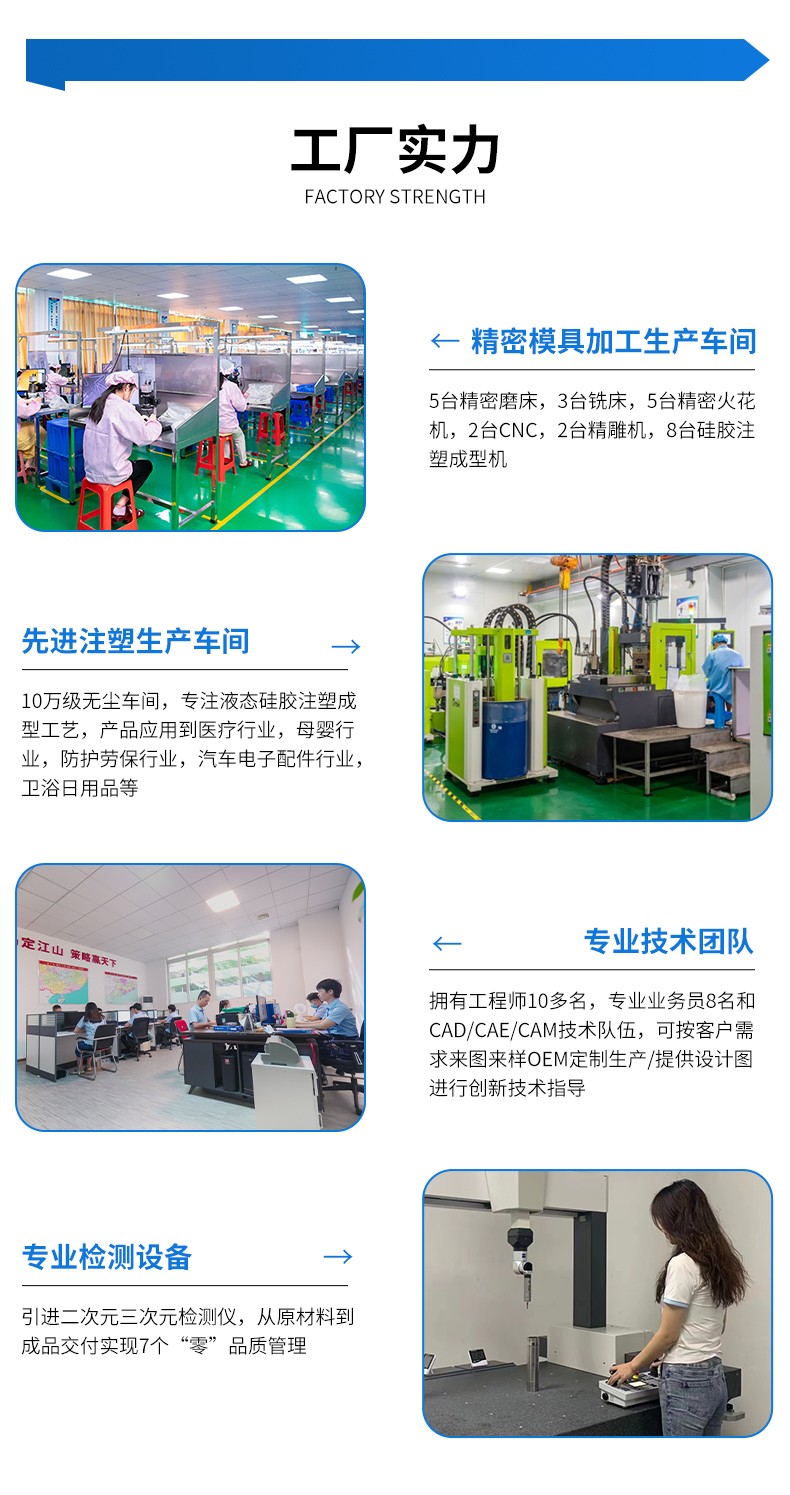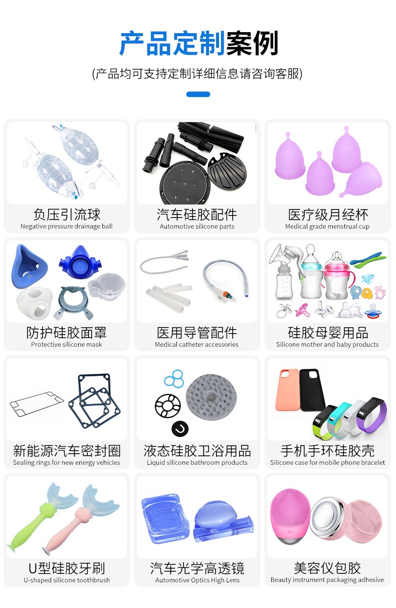 醫(yī)用液態(tài)硅膠注射成型高質(zhì)量制品,產(chǎn)品符合醫(yī)療級(jí),具有生物相容性,無色無毒無味,安全環(huán)保。液體硅膠具有優(yōu)異的透明度、抗撕裂強(qiáng)度、回彈性、抗黃變性、熱穩(wěn)定性、耐水、透氣性好、耐熱老化性和耐候性,同時(shí)粘度適中、便于操作,制品透明性高,可看到模具內(nèi)灌鑄材料是否有氣泡等缺陷,線收縮率≤0.1%,復(fù)制制品尺寸精密。我們的制品廣泛應(yīng)用于嬰幼兒用品、醫(yī)療用品及電子產(chǎn)品(密封件,按鍵)等等。